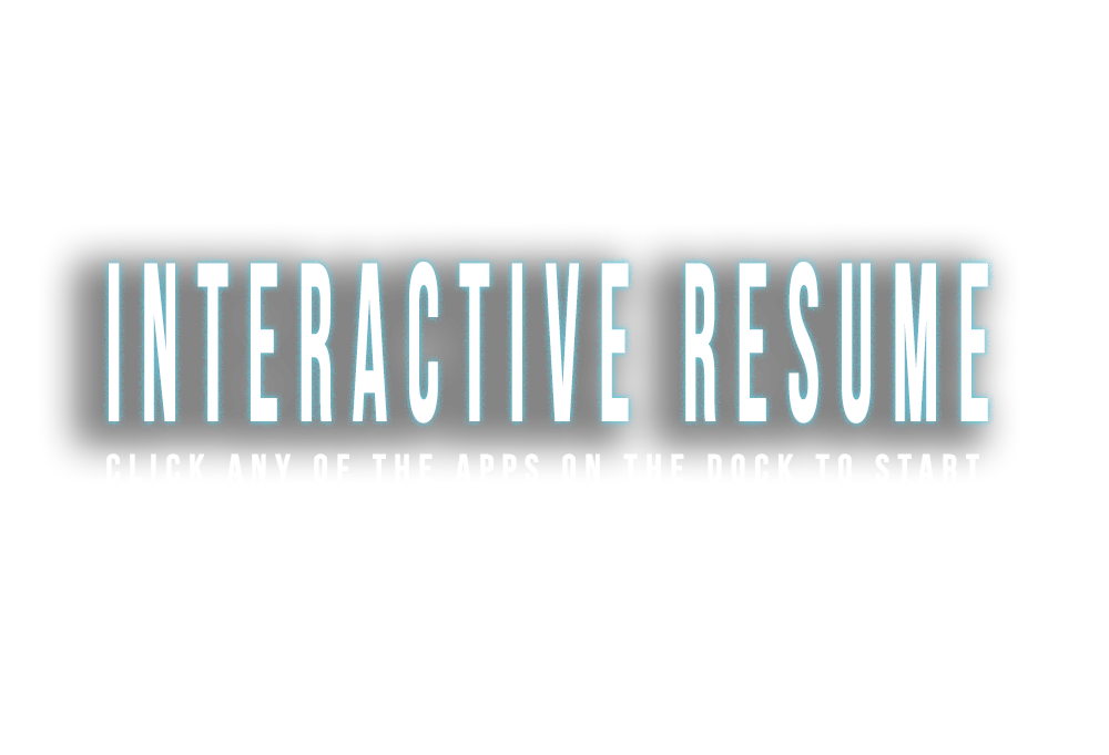 For this project, we were asked to create an interactive resume built from HTML5, CSS3, and Javascript to display all of our work and abilities. When brainstorming, the idea of creating a virtual Mac operating system as a UI immediately came to mind and that's what I decided to do for this project. Everything is powered through the dock located at the bottom of the screen. The dock contains apps that best represent my skill areas. Clicking on one will pop up a window of that particular program's UI with a slideshow that displays all of my work along with where my levels are for each skill inside that program.